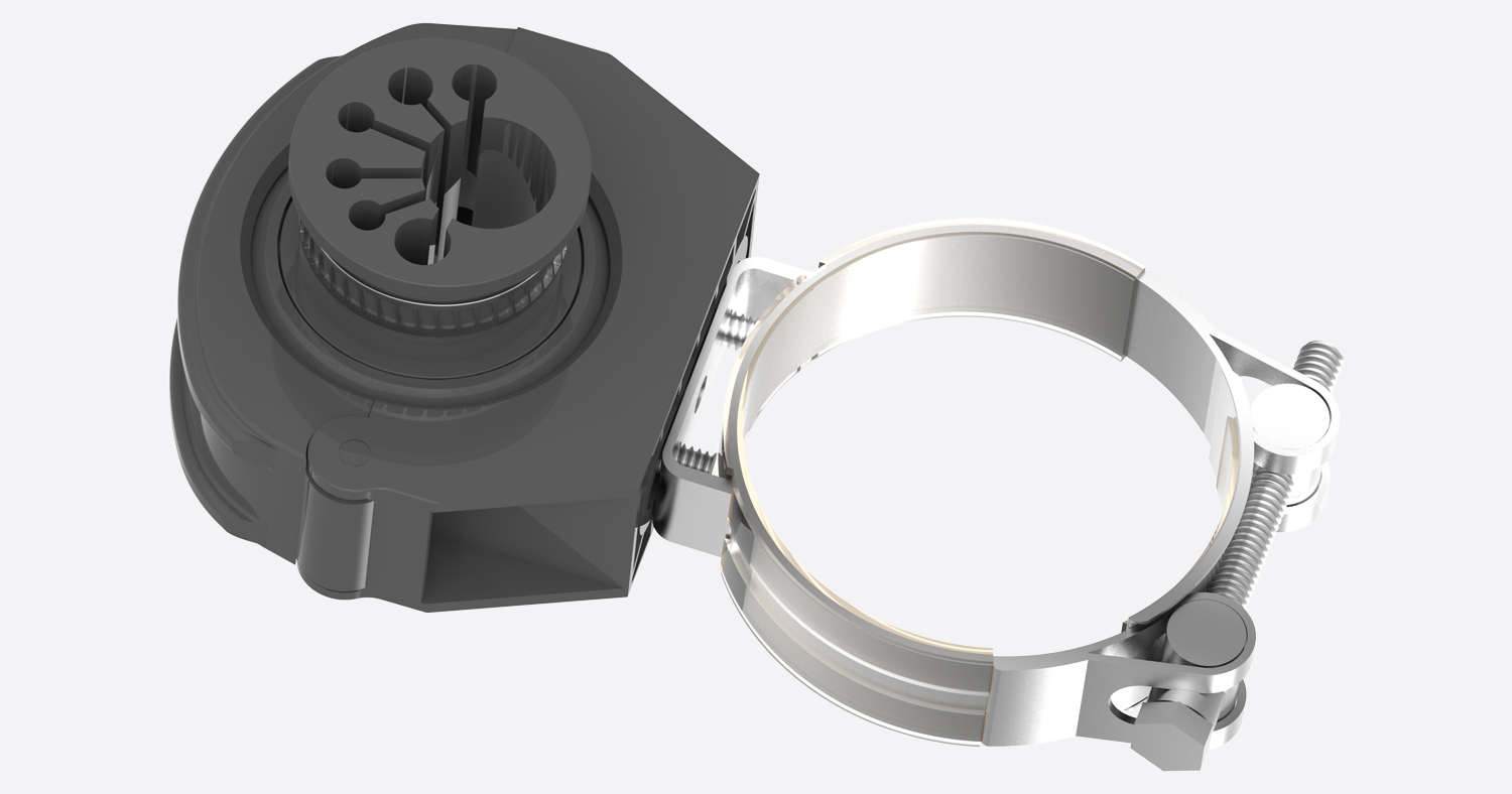 产品性能:抱箍锁紧机械手臂,支架固定波纹软管并引导出线
